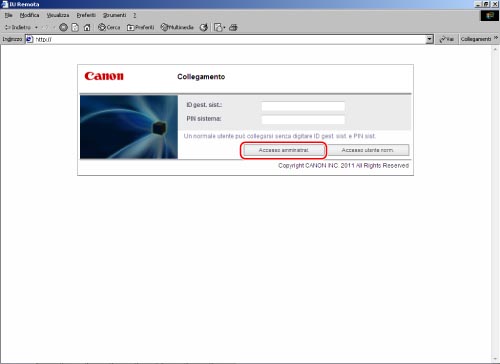 Immettere il seguente URL nel browser → fare clic su [Account di accesso Administrator].
