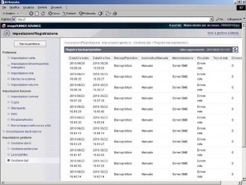 Fare clic su [Registro backup/ripristino] → verificare che il backup sia stato eseguito correttamente.