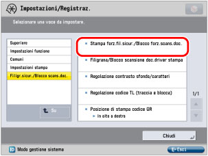 Impostazione del modo Blocco forzato scansione documento e Filigrana di sicurezza