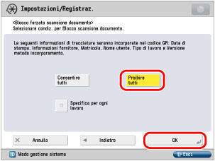 Selezionare [Proibire tutti] → premere [OK].