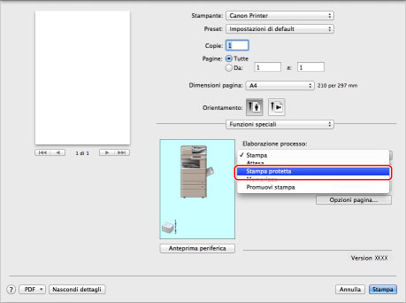 Selezionare [Stampa protetta] da [Metodo di stampa].