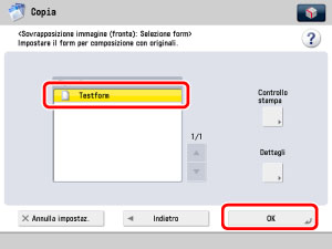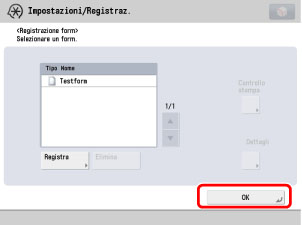Dopo aver registrato l'originale come un form immagine, premere [OK].