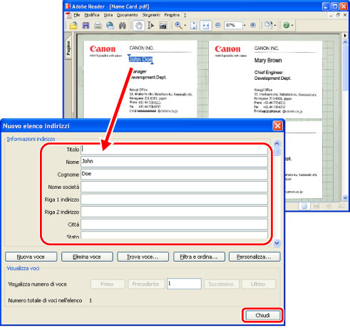 Dopo aver inserito tutti i biglietti da visita, fare clic su [Chiudi].