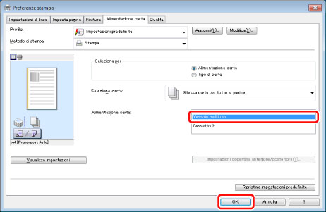 Selezionare la fonte alimentazione carta che contiene le etichette → fare clic su [OK].