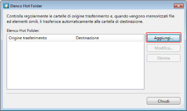 Viene visualizzata la finestra di dialogo [Elenco Hot Folder].