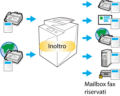 imageRUNNER ADVANCE consente il trasferimento dei documenti fax ricevuti verso varie destinazioni. Configurare le impostazioni di trasferimento registrando la destinazione e le condizioni di trasferimento. È possibile specificare come destinazione una cartella condivisa sulla rete. Per informazioni dettagliate sulle impostazioni di trasferimento, consultare il manuale elettronico di imageRUNNER ADVANCE.
