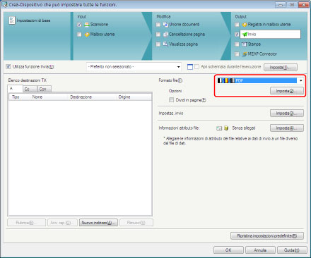 Per [Formato file] selezionare [PDF] → fare clic su [Imposta].