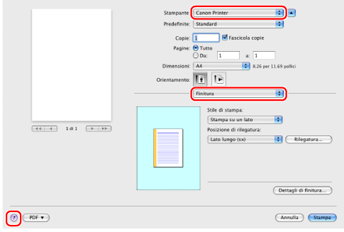 Selezionare la stampante da [Stampante] → selezionare un riquadro di preferenze → fare clic su [