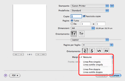 Per aggiungere un margine a ciascuna pagina, selezionare il tipo di linea da [Margine].