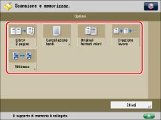 È necessario impostare <Utilizzo funzione Scansione> in [Utilizzo funzione Scansione/Stampa] su 'On' per eseguire la scansione di originali nel supporto memoria. (Vedere "Impostazioni supporto memoria".)