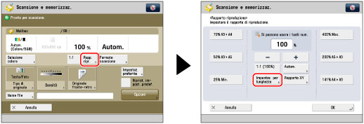 È possibile selezionare solo l'impostazione [Autom.] nella schermata Rapporto riproduzione se è impostata una risoluzione di 300 x 300 dpi o di 600 x 600 dpi.