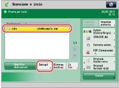 Selezionare la destinazione dal gruppo → premere [Dettagli].