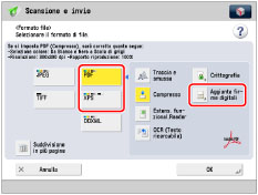 Non è possibile specificare le firme visibili se [Da formato PDF a formato PDF/A] è impostato su 'On'. (Vedere "Formattazione di file PDF in PDF/A".)