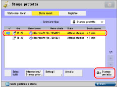 Se sono presenti dei processi in fase di stampa o in attesa di stampa, i documenti protetti/documenti protetti crittografati verranno stampati al termine della stampa di tali processi.