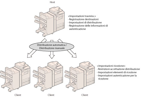 Le informazioni della periferica possono essere condivise tra macchine dello stesso modello (imageRUNNER ADVANCE 4251i/4245i/4235i/4225i). Tuttavia, alcune informazioni potrebbero non essere distribuite correttamente a seconda dei prodotti opzionali disponibili per l'uso sulla macchina.