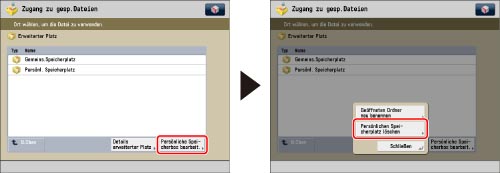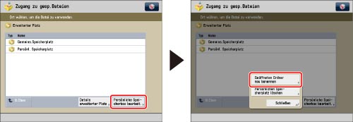 Berühren Sie nacheinander die Tasten [Persönlich. Speicherplatz bearb.] → [Geöffneten Ordner neu benennen].