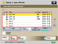Wählen Sie die gewünschte Datei → Berühren Sie die Taste [Bild anzeigen].