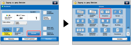 Die Funktionen Sattelheftung und Teilen als Broschüre können nur bei angeschlossenem Broschüren Finisher G1 eingestellt werden.
