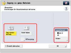 Sie können [Falz/Heftpos. ändern] nur einstellen, wenn Sie [Falz+Sattelheftung] auswählen.