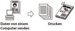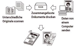 Mit der Funktion <Scannen und Speichern> können Sie Dokumentdaten speichern, die eingescannt oder auf einem Computer erstellt wurden. Die gespeicherten Daten können zu einem festgelegten Zeitpunkt gedruckt oder für die gleichzeitige Bearbeitung mit Daten zusammengeführt werden, die separat gespeichert oder auf einem Rechner erstellt wurden.
