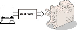 Sie können von Ihrem Computer aus über den Webbrowser Funktionen, wie z. B. die Überprüfung des Systemstatus, die Überprüfung von Auftragsoperationen oder das Drucken von Anweisungen für gespeicherte gescannte Daten, steuern.