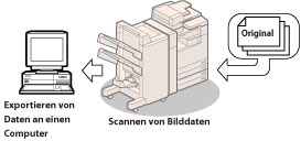 Mit der Netzwerk-Scanfunktion können Sie den imageRUNNER ADVANCE 4251i/4245i/4235i/4225i als herkömmlichen Scanner verwenden. Sie können Dokumente mit dem System einscannen und Daten in eine Anwendung auf Ihrem Computer einlesen. Sie können Bilder bis zum Format A3 mit 600 x 600 dpi scannen.