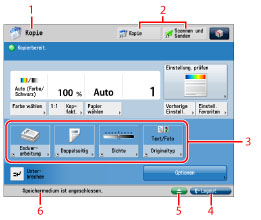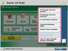 oben rechts im Grundfunktionen-Display [Scannen und Senden], Grundfunktionen-Display [Fax], Senden-Display [Zugang zu gesp.Dateien] und Senden-Display [Fax/I-Fax Eingangsbox] speichern. |
