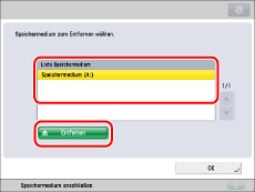 Wählen Sie das zu entfernende Speichermedium → Berühren Sie die Taste [Entfernen].