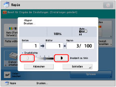 Wenn Sie die Dichte in [Optionen] ändern, hat das Justieren der Dichte während des Kopierens möglicherweise keine Auswirkung auf die Ausgabe.