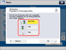 Wenn der Fotomodus in <Einstellungen Funktion> unter (Menü <Einstellungen/Speicherung>) aktiviert wurde, können Sie [Druckbild] wählen. (Vgl. Abschnitt "Kopieren mit der Funktion <Druckbild>".)