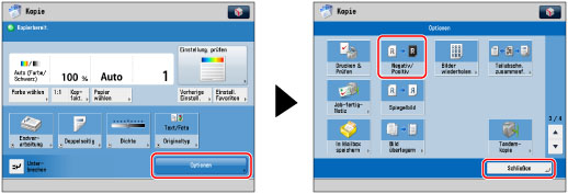 Berühren Sie nacheinander die Tasten [Optionen] → [Negativ/Positiv] → [Schließen].