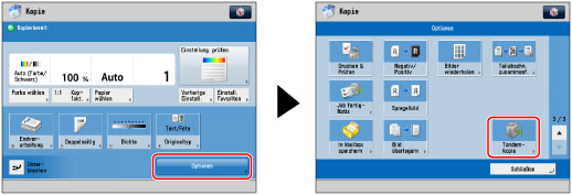 Sie können keinen Tandemkopierauftrag durchführen, solange Sie mit der Funktion <Tandemkopie> kopieren.
