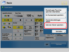 Berühren Sie die Taste [Optionen-Kürzel speichern].