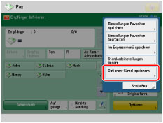 Berühren Sie die Taste [Optionen-Kürzel speichern].