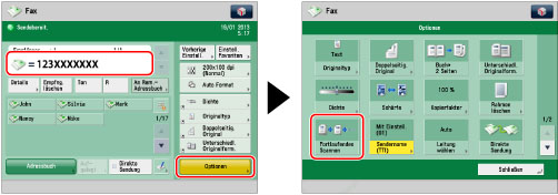 Sie können nur Einstellungen ändern, die in der Funktion <Fortlaufendes Scannen> in [Einstell. ändern] erscheinen. Sie müssen die erforderlichen Scaneinstellungen im Voraus definieren.