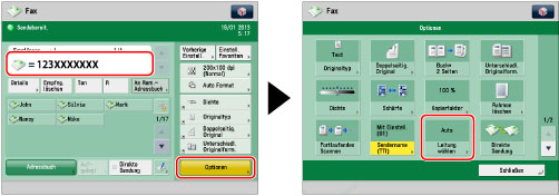 Wenn Sie [Auto] wählen, werden Telefonnummer und Name, die für die zum Senden verwendete Leitung gespeichert wurden, beim Empfänger auf das Papier gedruckt. Sie können auch auf dem Sensordisplay des Systems der Gegenstelle angezeigt werden.