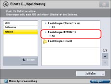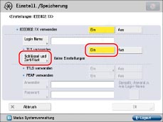 Berühren Sie [Ein] für <IEEE802.1X verwenden>.
