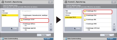 Berühren Sie [Einstellungen TCP/IP] → [Einstellungen IPv4].