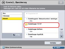 Berühren Sie [Präferenzen] → [Netzwerk] → [Einstellungen TCP/IP].