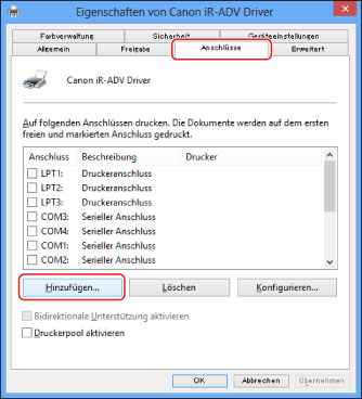 Klicken Sie im Eigenschaftenfenster des Druckers auf [Anschluss konfigurieren].