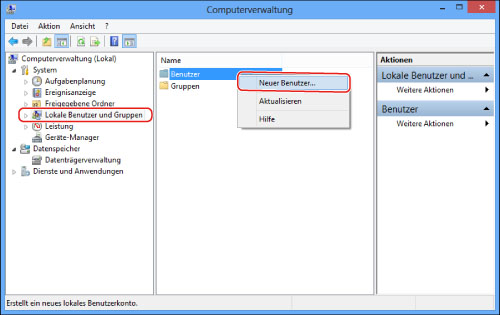 Klicken Sie mit der rechten Maustaste auf den Ordner [Benutzer] → Klicken Sie auf [Neuer Benutzer].