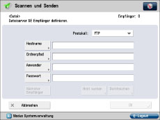 Sie können für [Hostname] bis zu 128 alphanumerische Zeichen über das Bedienfeld eingeben. Sie können außerdem für [Ordnerpfad] bis zu 255 alphanumerische Zeichen über das Bedienfeld eingeben. Legen Sie die Servereinstellungen unter Beachtung der Zeichenbegrenzung fest.
