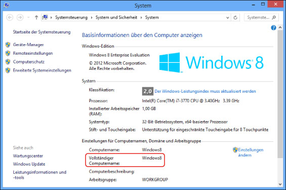 Klicken Sie auf die Registerkarte [Computername] → Bestätigen Sie [Vollständiger Computername] → Klicken Sie auf [Abbrechen].