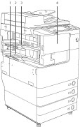 Wenn die Funktion <Sortieren>, <Gruppieren> oder <Heften> aktiviert ist, bewegt sich die Ausgabeeinheit automatisch unten, wenn der ausgegebene Papierstapel größer wird, und der Druckvorgang kann nach der Papierausgabe in folgenden Fällen vorübergehend gestoppt werden. Um den Druckvorgang fortzusetzen, nehmen Sie alle Drucke aus dem Fach.