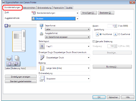 Die Anzeige kann sich je nach Betriebssystem sowie Typ und Version des Druckertreibers unterscheiden.