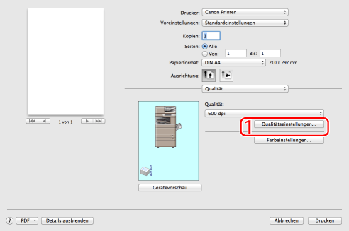 Wenn Sie Mac OS X 10.7 oder höher verwenden, können Sie nach Anklicken von [Details einblenden]/[Details ausblenden] im unteren Bildschirmbereich Optionen anzeigen oder ausblenden.