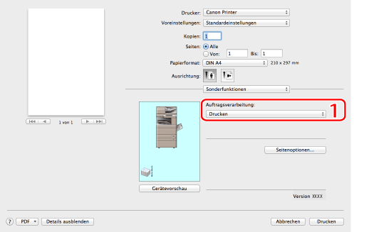 Wenn Sie Mac OS X 10.7 oder höher verwenden, können Sie nach Anklicken von [Details einblenden]/[Details ausblenden] im unteren Bildschirmbereich Optionen anzeigen oder ausblenden.