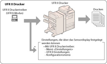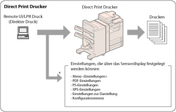 *Einstellungen, die nicht über den Druckertreiber oder ein Remote UI definiert werden können, sondern über das Display vorgenommen werden, sind mit einem Sternchen (*) gekennzeichnet.