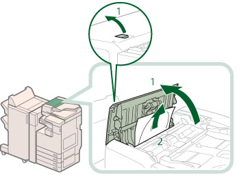 1. Ziehen Sie den Hebel und öffnen Sie die Abdeckung des Einzugs.