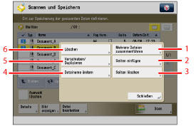 [Datum/Zeit] Durch Berühren dieser Taste sortieren Sie die Dokumente in aufsteigender oder absteigender Reihenfolge nach Datum und Zeit.